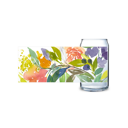 Floral Blooms Wreath – Elegant Glassware with a Touch of Nature with or without Reusable Straw and Lid