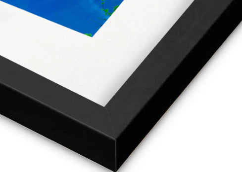 Each artwork is printed on luxurious 100% fine cotton rag paper. They are printed with lightfast pigments and framed with UV-protectant poly-glass.